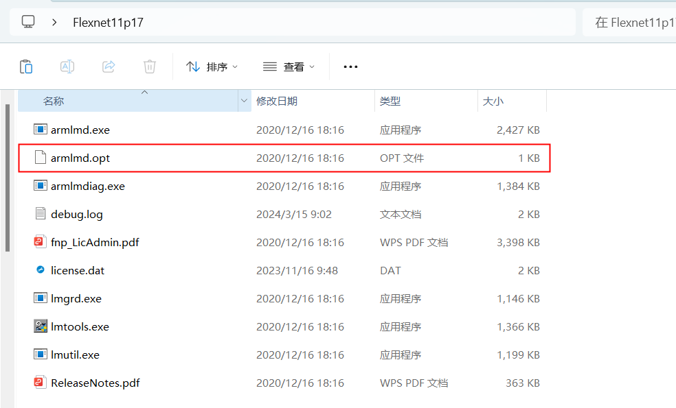 3)、进入服务管理程序存放的文件夹,双击打开<lmtools.exe>,首先停止服务,再保存一次,读取"armld.opt"内数据,然后再次重启该服务。