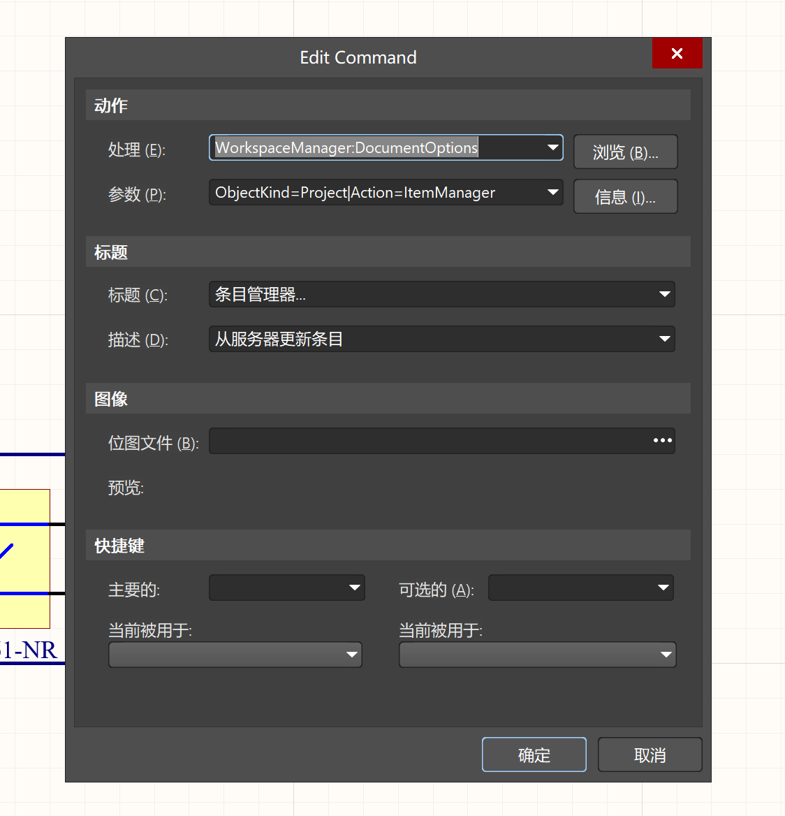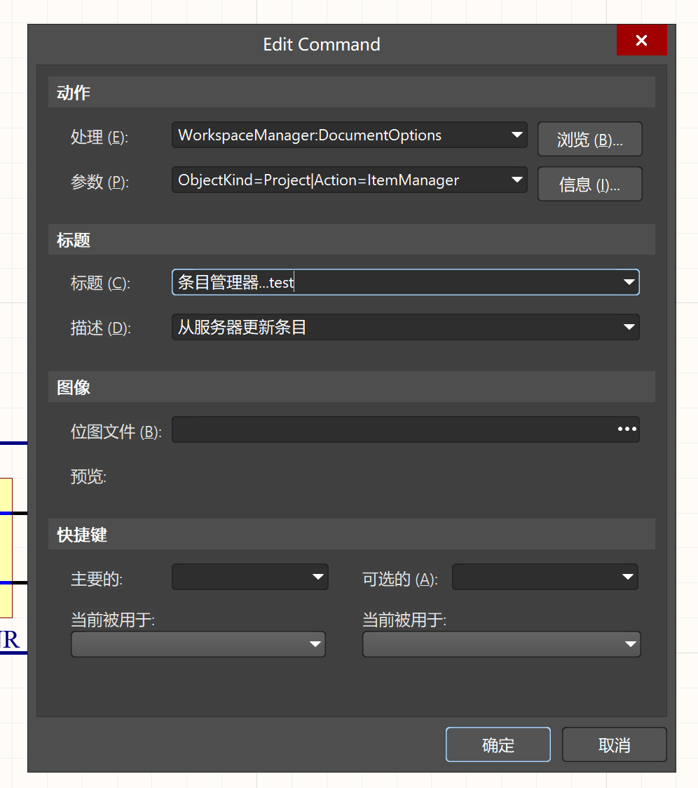 2、按住ctrl键同时鼠标左键点击要修改的菜单,会弹出Edit Command窗口,见图1。