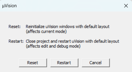 ○ Reset(即时生效):仅重置当前模式下的窗口布局拓扑结构,保留项目配置与代码内容。