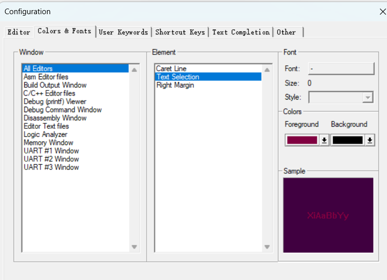 3)、在IDE内工程师会更根据自己的习惯进行修改,软件设备找不到相关的设置,默认颜色未知。