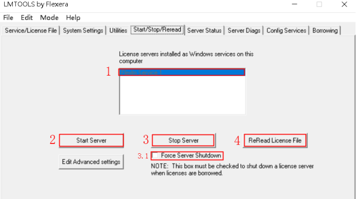 点击标记4处:更新许可证服务器而不停止和启动它。当您手动通知许可证服务器有关许可证的更改时,需要使用此按钮。