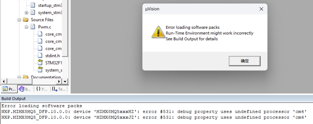 客户安装MIMX8MQ5_DFP_1.0.0和STM32H7xx_DFP_3.1.1分别出现keil打开出现报错以及无法安装问题,客户无法进行相关芯片的开发编译。