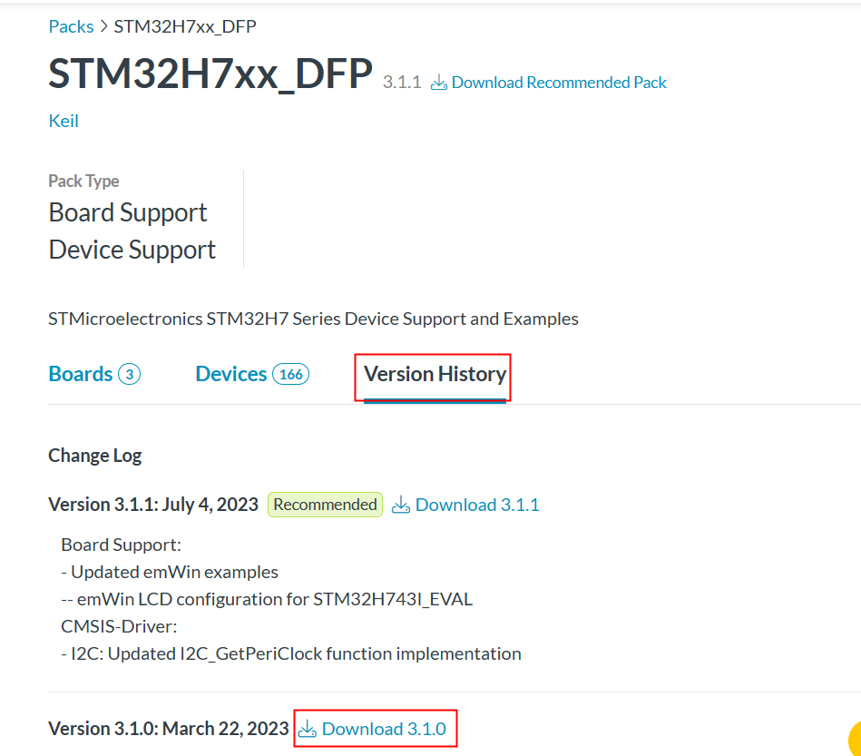 2)、STM32H7xx_DFP_3.1.1无法进行安装如图2-2所示,文件下载损坏,进入官网下载PACK包Arm Keil | Devices,