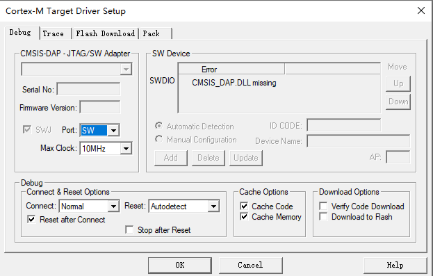 记录解决CMSIS_DAP.DLL missing的报错情况,对应相关报错信息,供后续客户参考,快速解决客户问题。