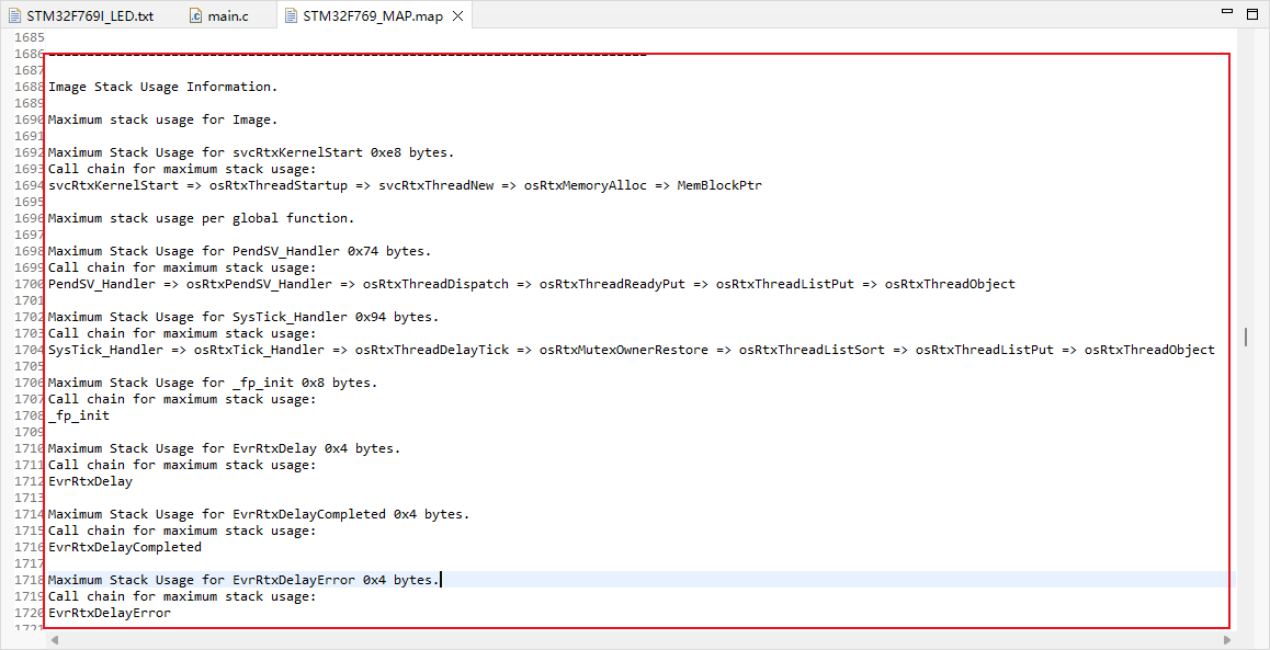 Maximum Stack Usage for svcRtxKernelStart 0xe8 bytes.(svcRtxKernelStart的最大堆栈使用率0xe8字节)