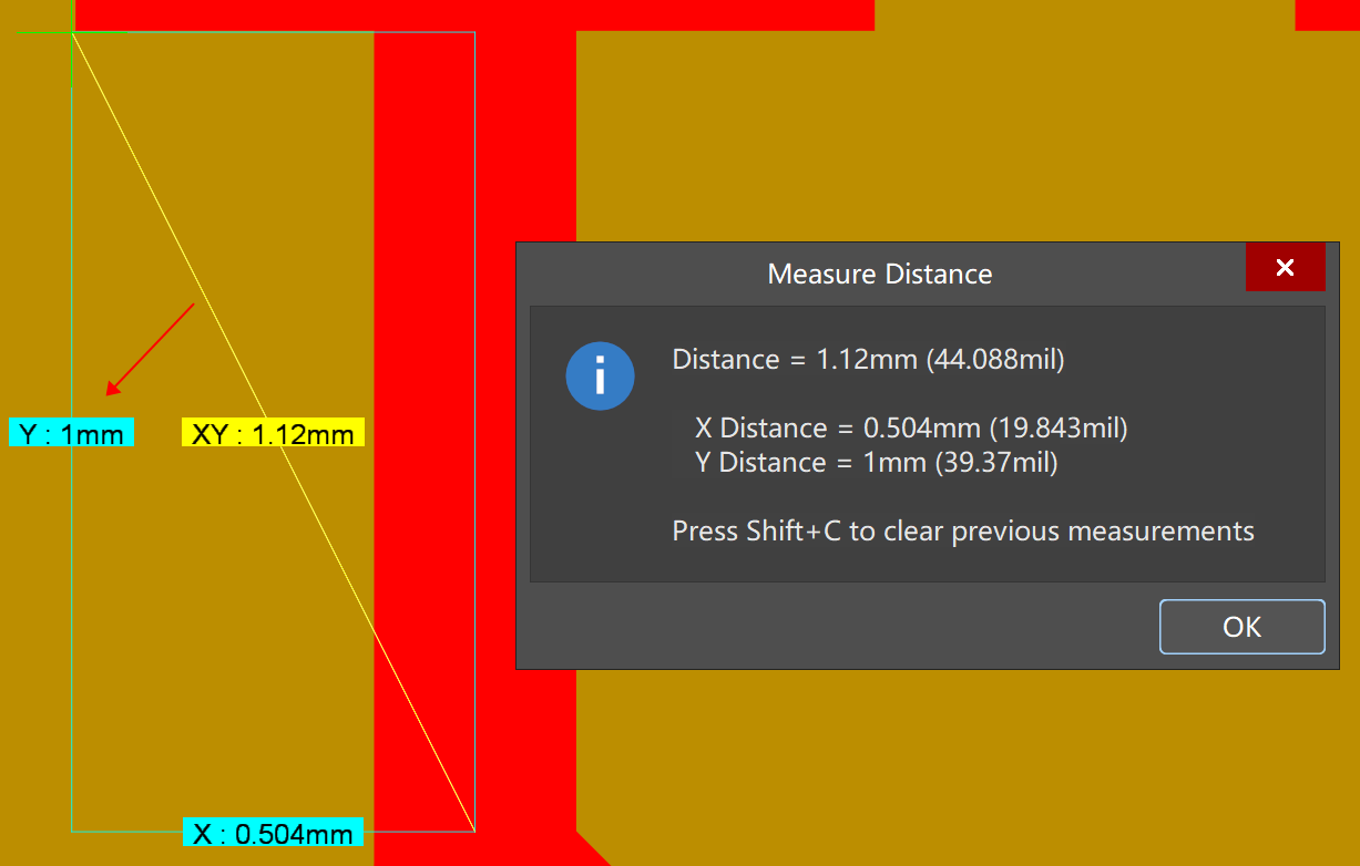 将规则中的距离进行更改,设置成1mm,再去进行拉线,此时发现,从焊盘引出导线后,在一定长度后才可以进行拐角操作,对引出的导线到拐角处的距离进行测量,长度为1mm,正是规则中设置的长度。