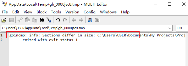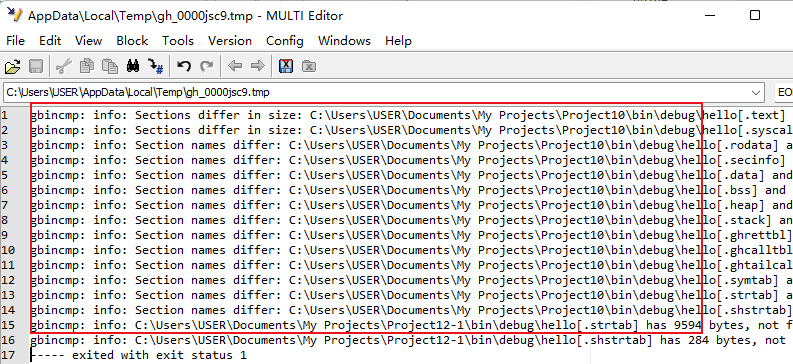 1)、在GHS中,gbincmp程序可以实现这个功能,gbincmp程序比较两个ELF二进制文件。程序的命令格式为:gbincmp [options] file1 file2