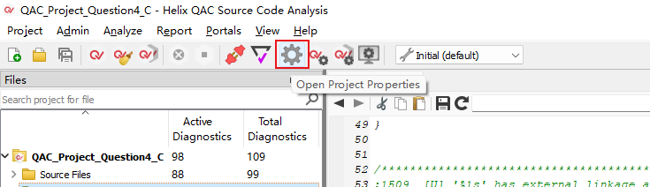 1)、在QAC中打开工程的属性窗口。(如图4-1)