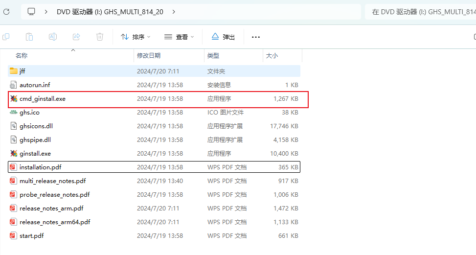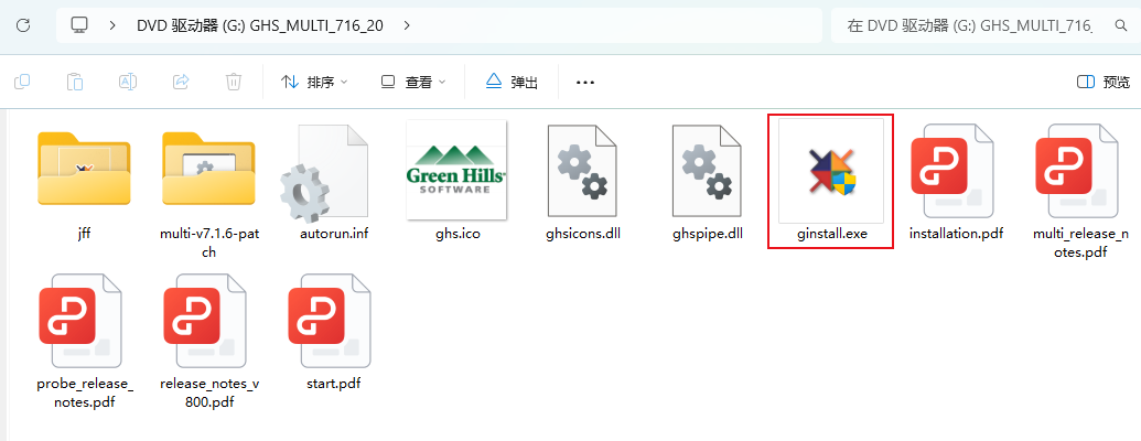 MULTI 7.1.6(d)版本的安装包中需要通过“ginstall.exe”命令去实现自动安装。(如图4-1)