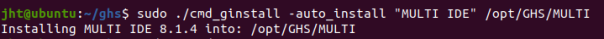 Linux:cmd_ginstall -auto_install Compiler ./Software/ghs_1/comp "MULTI IDE" ./Software/ghs_1/ide