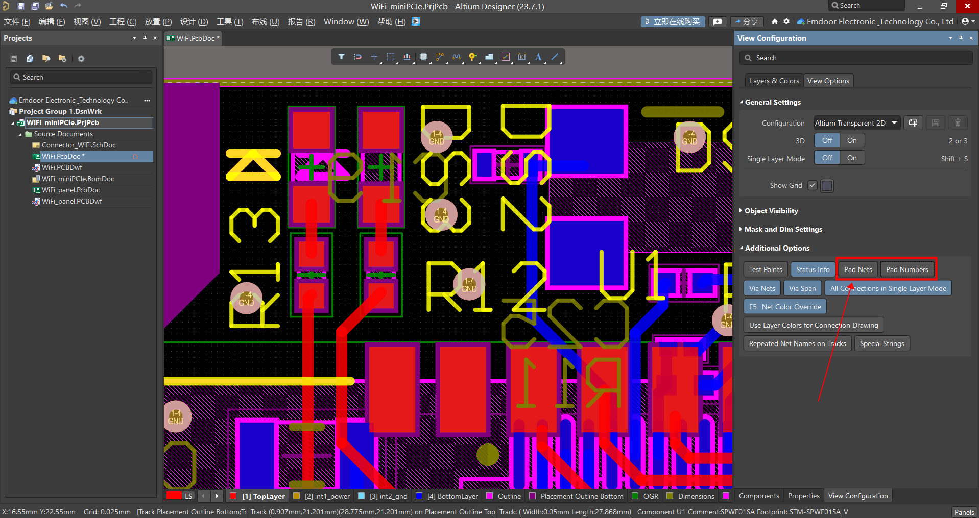 3. 第二个方法【Additional Options】:【Pad Nets】和【Pad Numbers】两个标签单击打开。