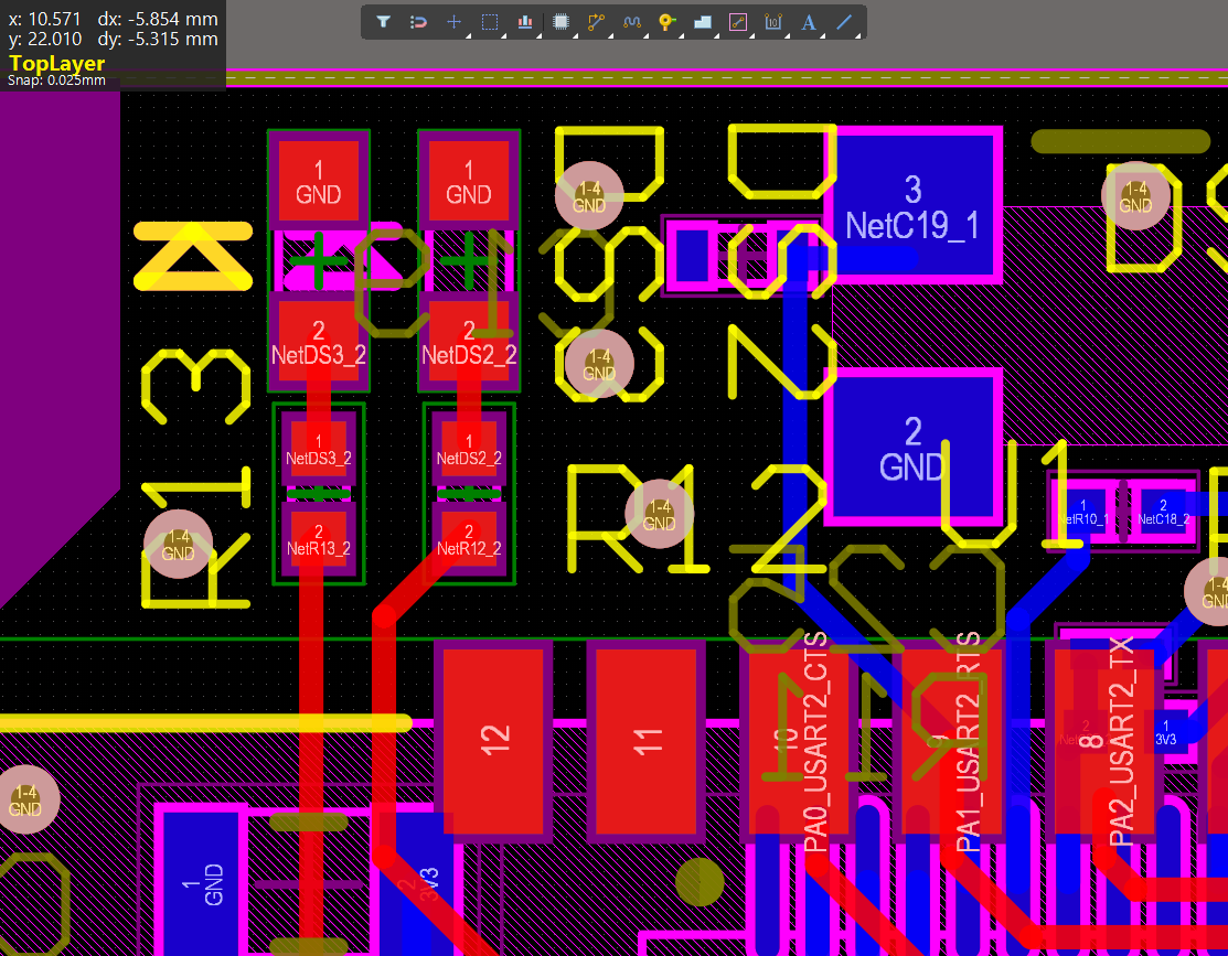 4. 以上两个方法都可以解决,PCB 中焊盘没有信息显示问题。如下图所示。