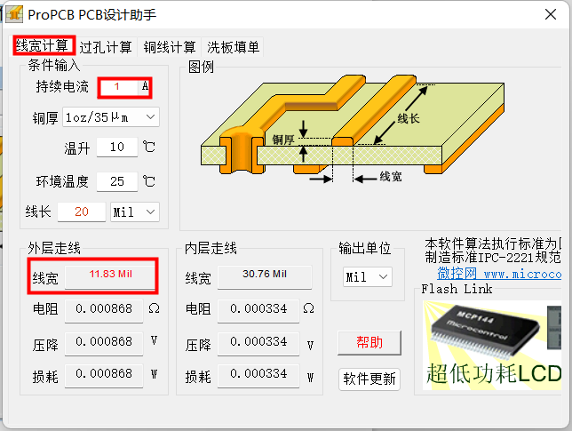 从上面的表格可以看出线宽和电流的关系。我们平常的产品中,信号线电流非常小,经常是 mA 级别的,因此信号线的线宽不用过多的考虑。但是电源线尽可能的大一点,这样会更加稳定一点。