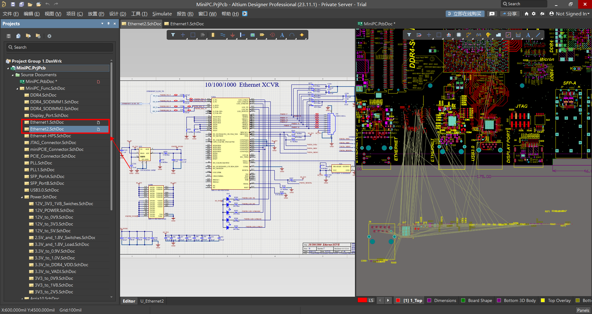 可以看到该模块原理图设计为平坦(扁平)设计
