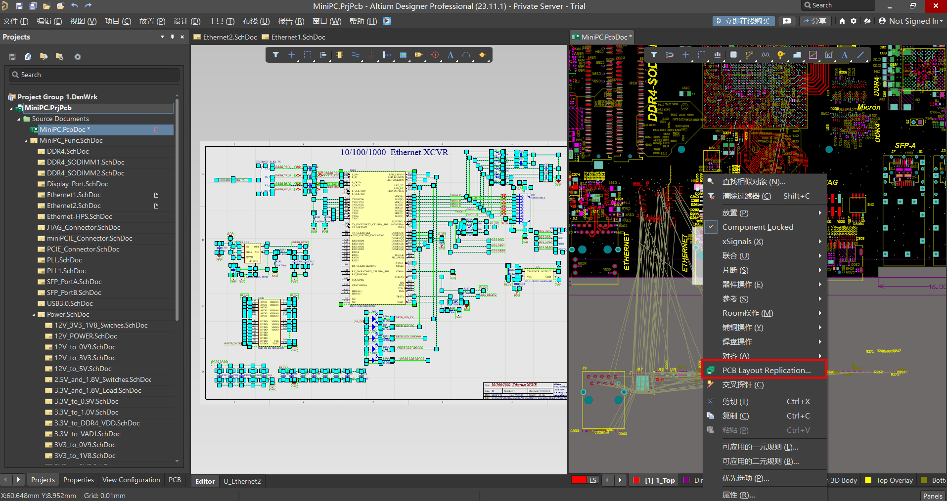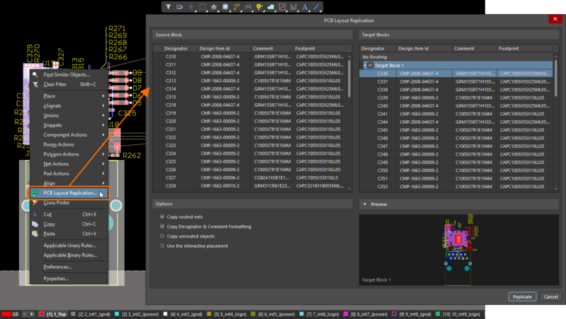 从主菜单中选择 Tools » PCB Layout Replication 命令(或右键单击所选内容,选择 PCB Layout Replication命令)。
