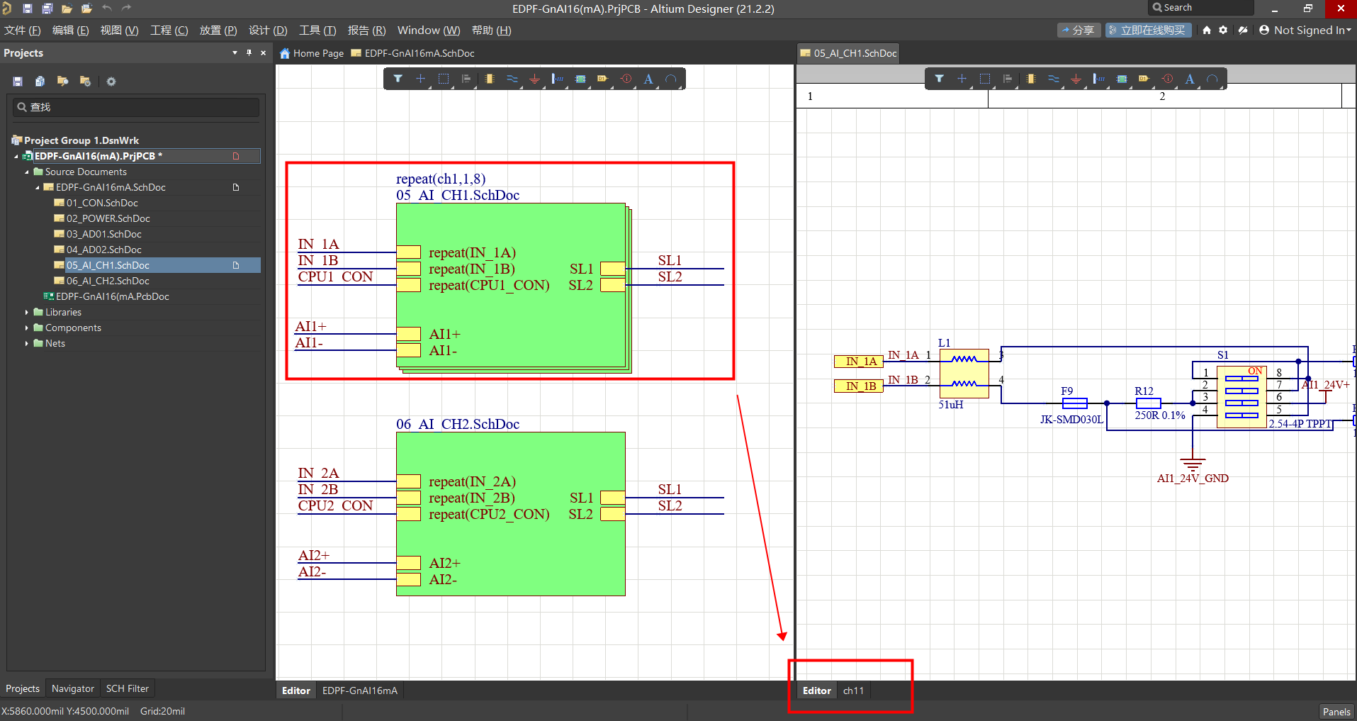 解决在原理图主图中,对子图使用多通道命令后,子图未形成多个通道的问题。