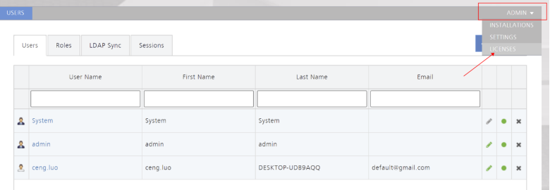 1. 打开AIS,进入设置界面,点击右上角【ADMIN】,选择【License】