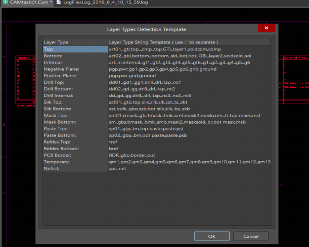 7.在CAM文件中点击Tables>>Layer Type Detection查看该文件对应的层分配标准,操作可参考下图7: